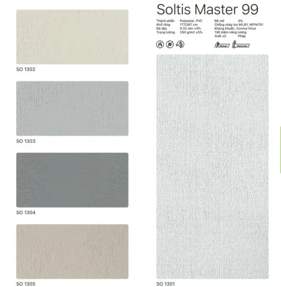 Bộ sưu tập màu của Rèm Roman mã Soltis Master 99