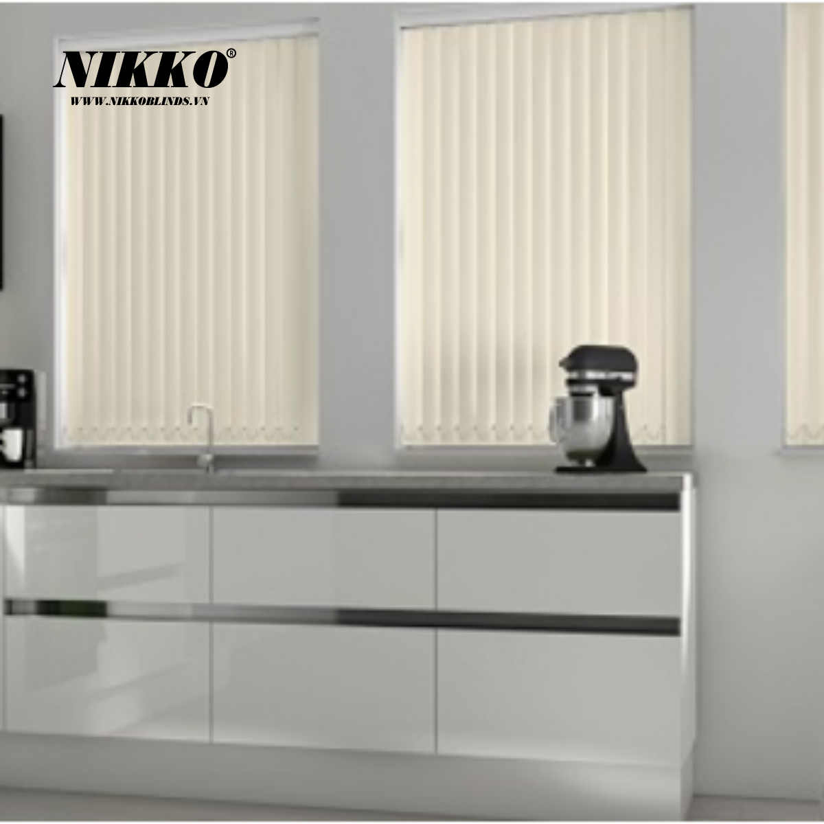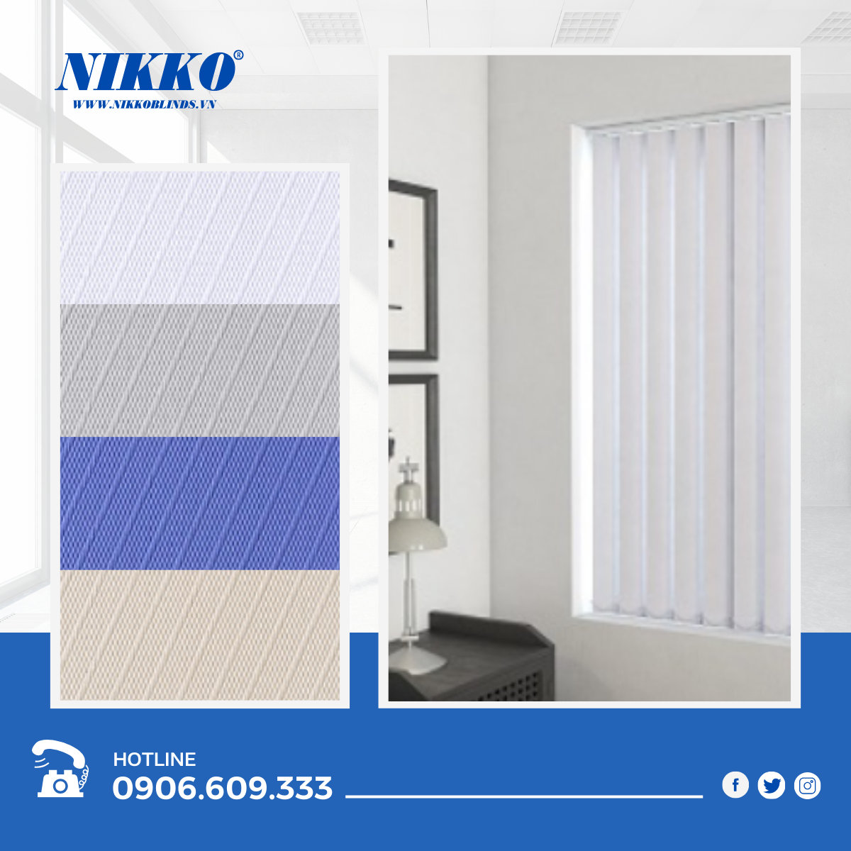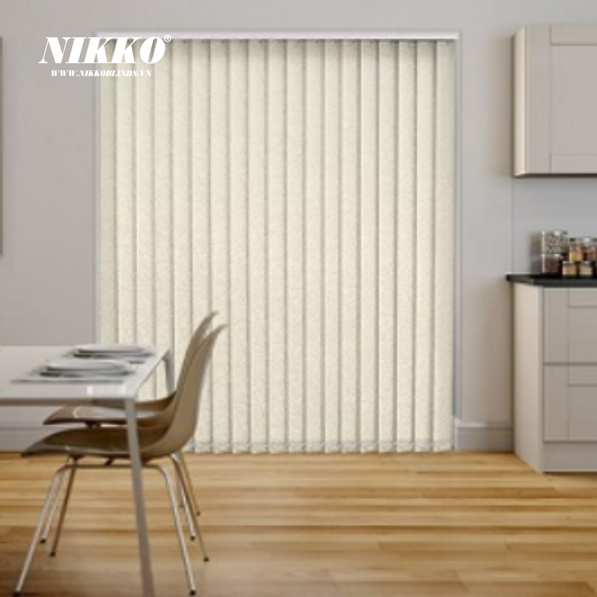 - Rèm lá dọc được làm từ chất liệu Polyester 100%, có mức độ chống nắng và cản sáng rất cao.