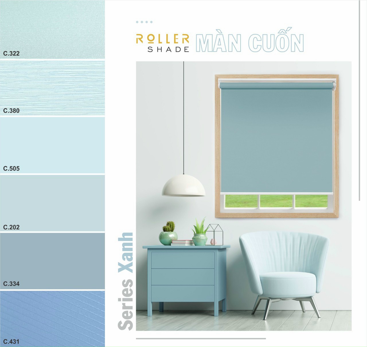 Rèm sáo cuốn trơn màu xanh NIKKOBLINDS có sự đa dạng trong chất liệu vải, thể hiện tốt tính năng "Độ mờ hoạt cảnh", cho phép người sử dụng cảm nhận/nhìn thấy không gian bên ngoài những vẫn đảm bảo được đặc tính cản nhiệt, cản sáng.